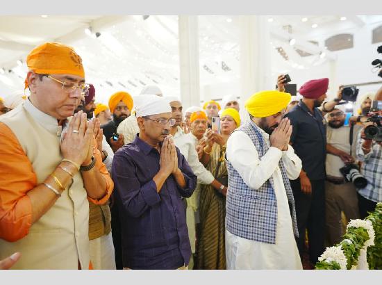 ਸ੍ਰੀ ਗੁਰੂ ਤੇਗ਼ ਬਹਾਦਰ ਜੀ ਦੇ 350ਵੇਂ ਸ਼ਹੀਦੀ ਦਿਵਸ ਨੂੰ ਸਮਰਪਿਤ ਸਜਾਏ ਕੀਰਤਨ ਦਰਬਾਰ 'ਚ ਸ਼ਾਮਲ ਹੋਏ ਕੇਜਰੀਵਾਲ ਅਤੇ ਭਗਵੰਤ ਮਾਨ