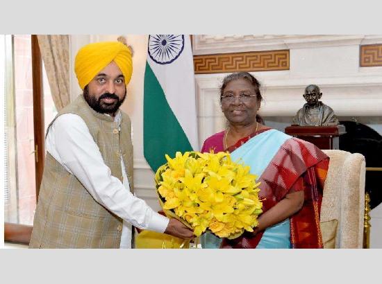 CM ਮਾਨ ਨੇ ਰਾਸ਼ਟਰਪਤੀ Murmu ਨਾਲ ਕੀਤੀ ਮੁਲਾਕਾਤ, ਸ੍ਰੀ ਅਨੰਦਪੁਰ ਸਾਹਿਬ ਵਿਖੇ ਹੋਣ ਵਾਲੇ 350ਵੇਂ ਸ਼ਹੀਦੀ ਸਮਾਗਮ ਦਾ ਦਿੱਤਾ ਸੱਦਾ
