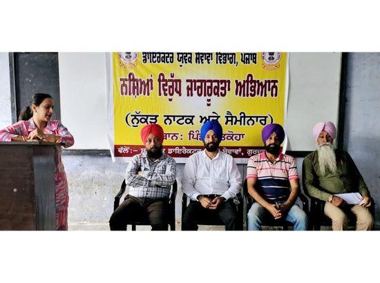 ਬਟਾਲਾ, 28 ਅਕਤੂਬਰ ਯੁਵਕ ਸੇਵਾਵਾਂ ਵਿਭਾਗ ਗੁਰਦਾਸਪੁਰ ਦੇ ਸਹਿਯੋਗ ਨਾਲ ਭਾਈ ਘਨੱਈਆ ਯੂਥ ਕਲੱਬ ਸਤਕੋਹਾ ਵੱਲੋਂ ਨੁੱਕੜ ਨਾਟਕ ਅਤੇ ਨਸ਼ਾ ਵਿਰੋਧੀ ਸੈਮੀਨਾਰ ਕਰਵਾਇਆ ਗਿਆ।
