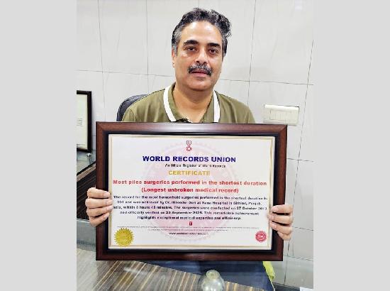 2023 ਵਿੱਚ, ਇਹ ਰਿਕਾਰਡ ਦੇਸ਼ ਦੀਆਂ ਸਰਹੱਦਾਂ ਤੋਂ ਪਰੇ ਗਿਆ, ਜਦੋਂ ਇਸ ਨੂੰ ਵਰਲਡ ਬੁੱਕ ਆਫ ਰਿਕਾਰਡਜ਼, ਲੰਡਨ ਵਿੱਚ ਦਰਜ ਕੀਤਾ ਗਿਆ। ਇਹ ਪਲ ਸਿਰਫ਼ ਭਾਰਤੀ ਆਯੁਰਵੇਦ ਸਮਾਜ ਲਈ ਮਾਣ ਦਾ ਕਾਰਨ ਨਹੀਂ ਸੀ, ਸਗੋਂ ਆਯੁਰਵੇਦ ਦੀ ਵਿਗਿਆਨਕ ਮਾਨਤਾ ਨੂੰ ਵਿਸ਼ਵ ਪੱਧਰ ‘ਤੇ ਪ੍ਰਮਾਣਿਤ ਕਰਨ ਵਾਲਾ ਸਬੂਤ ਸੀ , ਸਾਲਾਂ ਤੋਂ, ਡਾ. ਸੂਰੀ ਨੇ ਦੇਸ਼ ਅਤੇ ਆਯੁਰਵੇਦ ਦਾ ਮਾਣ ਵਧਾਇਆ ਹੈ। ਉਨ੍ਹਾਂ ਦੇ ਨਾਮ 59 ਇਨਾਮ ਅਤੇ 23 ਰਾਸ਼ਟਰੀ ਤੇ ਅੰਤਰਰਾਸ਼ਟਰੀ ਰਿਕਾਰਡ ਦਰਜ ਹਨ। ਉਨ੍ਹਾਂ ਦੇ ਪ੍ਰਸਿੱਧ ਸਨਮਾਨਾਂ ਵਿੱਚ ਧਨਵੰਤਰੀ ਐਵਾਰਡ (2019) ਵੀ ਸ਼ਾਮਲ ਹੈ — ਜੋ ਆਯੁਰਵੇਦ ਖੇਤਰ ਦਾ ਸਭ ਤੋਂ ਵੱਡਾ ਸਨਮਾਨ ਹੈ — ਇਹ ਉਨ੍ਹਾਂ ਨੂੰ ਸਭ ਤੋਂ ਘੱਟ ਸਮੇਂ ਵਿੱਚ ਸਭ ਤੋਂ ਵੱਧ ਸਰਜਰੀਆਂ ਕਰਨ ਲਈ ਦਿੱਤਾ ਗਿਆ ਸੀ। ਇਸ ਸ਼ਾਨਦਾਰ ਵਿਰਾਸਤ ਨੂੰ ਜਾਰੀ ਰੱਖਦਿਆਂ, 2025 ਵਿੱਚ ਡਾ. ਸੂਰੀ ਨੂੰ ਰਾਜ ਪੁਰਸਕਾਰ ਨਾਲ ਸਨਮਾਨਿਤ ਕੀਤਾ ਗਿਆ — ਜੋ ਰਾਜ ਦਾ ਸਭ ਤੋਂ ਵੱਡਾ ਨਾਗਰਿਕ ਸਨਮਾਨ ਹੈ, ਮਨੁੱਖਤਾ ਦੀ ਸੇਵਾ ਅਤੇ ਆਯੁਰਵੇਦ ਦੇ ਵਿਕਾਸ ਵਿੱਚ ਉਨ੍ਹਾਂ ਦੇ ਯੋਗਦਾਨ ਲਈ ਦਿੱਤਾ ਗਿਆ