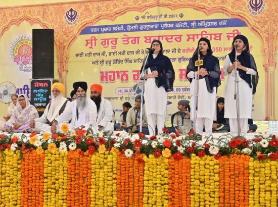 ਸ਼੍ਰੋਮਣੀ ਗੁਰਦੁਆਰਾ ਪ੍ਰਬੰਧਕ ਕਮੇਟੀ ਵੱਲੋਂ ਨੌਵੇਂ ਪਾਤਸ਼ਾਹ ਸ੍ਰੀ ਗੁਰੂ ਤੇਗ ਬਹਾਦਰ ਸਾਹਿਬ ਜੀ, ਭਾਈ ਮਤੀ ਦਾਸ ਜੀ, ਭਾਈ ਸਤੀ ਦਾਸ ਜੀ ਤੇ ਭਾਈ ਦਿਆਲਾ ਜੀ ਦੀ 350 ਸਾਲਾ ਸ਼ਹੀਦੀ ਸ਼ਤਾਬਦੀ ਅਤੇ ਦਸਵੇਂ ਪਾਤਸ਼ਾਹ ਸ੍ਰੀ ਗੁਰੂ ਗੋਬਿੰਦ ਸਿੰਘ ਜੀ ਦੇ 350 ਸਾਲਾ ਗੁਰਤਾਗੱਦੀ ਦਿਵਸ ਨੂੰ ਸਮਰਪਿਤ ਗੁਰਦੁਆਰਾ ਸਾਹਿਬ ਪਾਤਸ਼ਾਹੀ ਨੌਵੀਂ ਬਾਬਾ ਬਕਾਲਾ ਸਾਹਿਬ ਵਿਖੇ ਕਰਵਾਏ ਜਾ ਰਹੇ ਗੁਰਮਤਿ ਸਮਾਗਮ ਦੌਰਾਨ ਅੱਜ ਸ਼੍ਰੋਮਣੀ ਕਮੇਟੀ ਦੇ ਪ੍ਰਬੰਧ ਅਧੀਨ ਕਾਰਜਸ਼ੀਲ ਵੱਖ ਵੱਖ ਸਕੂਲਾਂ ਕਾਲਜਾਂ ਦੇ ਵਿਦਿਆਰਥੀਆਂ ਵੱਲੋਂ ਗੁਰਮਤਿ ਸੰਗੀਤ, ਢਾਡੀ, ਕਵੀਸ਼ਰੀ, ਕਵਿਤਾ ਤੇ ਭਾਸ਼ਣ ਰਾਹੀਂ ਹਾਜ਼ਰੀ ਭਰਦਿਆਂ ਗੁਰੂ ਸਾਹਿਬ ਦੀ ਸਿਫਤ ਸਾਲਾਹ ਕੀਤੀ ਗਈ।