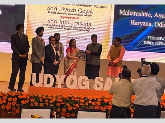 ਕੇਂਦਰੀ ਵਣਜ ਅਤੇ ਉਦਯੋਗ ਮੰਤਰੀ ਪੀਯੂਸ਼ ਗੋਇਲ ਨੇ ਅੱਜ ਕੌਮੀ ਰਾਜਧਾਨੀ ਵਿਖੇ ਕਰਵਾਏ ਗਏ ਸਮਾਗਮ ਦੌਰਾਨ ਸੂਬੇ ਨੂੰ ਇਹ ਪੁਰਸਕਾਰ ਪ੍ਰਦਾਨ ਕੀਤਾ।