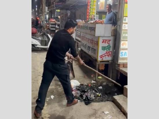 ਸਫਾਈ ਵਿਵਸਥਾ ਦਾ ਬੁਰਾ ਹਾਲ: ਨਾਲੀਆ ਦੀ ਸਫਾਈ ਕਰਦਾ ਨਜ਼ਰ ਆਇਆ ਦੁਕਾਨਦਾਰ, ਕਹਿੰਦਾ ਮੇਰੇ ਪਿਤਾ ਜੀ ਤਾਂ ਰੋਜ਼ ਗਲੀ ਦੀ ਨਾਲੀ ਸਾਫ ਕਰਦੇ