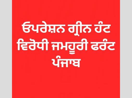 ਜਲੰਧਰ, ਚੰਡੀਗੜ੍ਹ 3 ਦਸੰਬਰ: ਓਪਰੇਸ਼ਨ ਗਰੀਨ ਹੰਟ ਵਿਰੋਧੀ ਜਮਹੂਰੀ ਫਰੰਟ ਪੰਜਾਬ ਦੇ ਸੂਬਾ ਕਨਵੀਨਰਾਂ, ਡਾ.ਪਰਮਿੰਦਰ,ਪ੍ਰੋ.ਏ ਕੇ ਮਲੇਰੀ,ਬੂਟਾ ਸਿੰਘ ਮਹਿਮੂਦ ਪੁਰ ਤੇ ਯਸ਼ ਪਾਲ ਨੇ ਦੱਸਿਆ ਕਿ ਜਮਹੂਰੀ ਫਰੰਟ ਵੱਲੋਂ 7 ਦਸੰਬਰ ਨੂੰ ਸਵੇਰੇ 10.30 ਵਜੇ ਦੇਸ਼ ਭਗਤ ਯਾਦਗਾਰ ਹਾਲ ਜਲੰਧਰ ਵਿਖੇ ਕੌਮਾਂਤਰੀ ਮਨੁੱਖੀ ਅਧਿਕਾਰ ਦਿਵਸ ਨੂੰ ਸਮਰਪਿਤ ਸੂਬਾਈ ਕਨਵੈਨਸ਼ਨ ਤੇ ਮੁਜ਼ਾਹਰਾ ਕੀਤਾ ਜਾ ਰਿਹਾ ਹੈ। ਜਿਸ ਵਿਚ ਮੁੱਖ ਵਕਤਾ ਜਮਹੂਰੀ ਤੇ ਮਨੁੱਖੀ ਹੱਕਾਂ ਦੇ ਉੱਘੇ ਘੁਲਾਟੀਏ ਪ੍ਰਸ਼ਾਂਤ ਰਾਹੀ, ਨਦੀਮ ਖ਼ਾਨ ਅਤੇ ਡਾ. ਨਵਸ਼ਰਨ ਹੋਣਗੇ। ਪੰਜਾਬ ਦੀਆਂ ਜਨਤਕ ਜਮਹੂਰੀ ਤਾਕਤਾਂ ਦਾ ਇਹ ਇਕੱਠ ਭਾਰਤੀ ਰਾਜ ਵੱਲੋਂ ਕਤਲੇਆਮ, ਜੇਲ੍ਹਬੰਦੀ ਅਤੇ ਝੂਠੇ ਕੇਸਾਂ ਰਾਹੀਂ ਜਮਹੂਰੀ ਤੇ ਮਨੁੱਖੀ ਹੱਕਾਂ ਦਾ ਕਰੂਰਤਾ ਨਾਲ ਘਾਣ ਕਰਨ ਦਾ ਗੰਭੀਰ ਨੋਟਿਸ ਲੈਂਦੇ ਹੋਏ ਇਸ ਵਿਰੁੱਧ ਜਨਤਕ ਜਮਹੂਰੀ ਆਵਾਜ਼ ਬੁਲੰਦ ਕਰਨ ਦਾ ਸੱਦਾ ਦੇਵੇਗਾ।