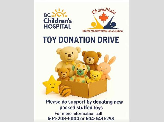 ਸਰੀ, 18 ਦਸੰਬਰ 2025-ਛੋਟੇ ਸਾਹਿਬਜ਼ਾਦਿਆਂ ਬਾਬਾ ਜੋਰਾਵਰ ਸਿੰਘ ਜੀ ਅਤੇ ਬਾਬਾ ਫਤਿਹ ਸਿੰਘ ਜੀ ਦੀ ਅਦੁੱਤੀ ਸ਼ਹਾਦਤ ਨੂੰ ਸਮਰਪਿਤ ਕਰਦੇ ਹੋਏ ਚੜ੍ਹਦੀਕਲਾ ਬ੍ਰਦਰਹੁਡ ਵੈਲਫੇਅਰ ਐਸੋਸੀਏਸ਼ਨ ਵੱਲੋਂ ਲੋੜਵੰਦ ਅਤੇ ਬਿਮਾਰ ਬੱਚਿਆਂ ਦੇ ਚਿਹਰਿਆਂ ‘ਤੇ ਮੁਸਕਾਨ ਲਿਆਉਣ ਦੇ ਉਦੇਸ਼ ਨਾਲ ਖਿਡੌਣੇ ਦਾਨ ਮੁਹਿੰਮ ਦੀ ਸ਼ੁਰੂਆਤ ਕੀਤੀ ਗਈ ਹੈ। ਇਹ ਮੁਹਿੰਮ ਖ਼ਾਸ ਤੌਰ ‘ਤੇ ਬੀਸੀ ਚਿਲਡਰਨ ਹੌਸਪੀਟਲ ਵਿੱਚ ਇਲਾਜ ਅਧੀਨ ਬੱਚਿਆਂ ਲਈ ਸਮਰਪਿਤ ਹੈ।