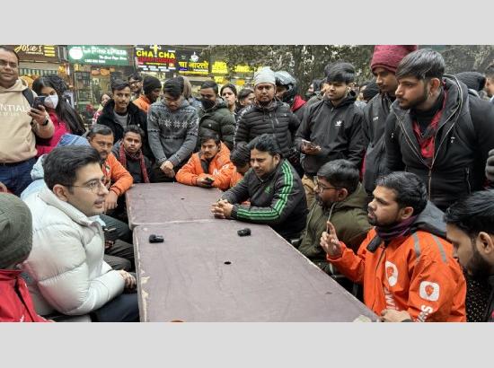 ਰਾਘਵ ਚੱਢਾ ਨੇ ਡਿਲੀਵਰੀ ਵਰਕਰਾਂ ਦੇ ਸਮਰਥਨ 'ਚ ਮਾਰਿਆ ਹਾਅ ਦਾ ਨਾਅਰਾ; ਪ੍ਰਦਰਸ਼ਨਕਾਰੀਆਂ ਨਾਲ ਕੀਤੀ ਮੁਲਾਕਾਤ