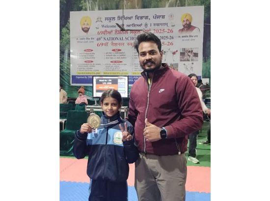 (ਪਟਿਆਲਾ)- 69ਵੀਆਂ ਨੈਸ਼ਨਲ ਸਕੂਲ ਖੇਡਾਂ ਤਾਈਕਵਾਂਡੋ ਅੰਡਰ-14 ਲੜਕੀਆਂ ਲੁਧਿਆਣਾ ਵਿਖੇ 5 ਜਨਵਰੀ 2026 ਤੋਂ 11 ਜਨਵਰੀ 2026 ਤੱਕ ਕਰਵਾਈਆਂ ਗਈਆਂ। ਇਹ ਖੇਡਾ ਸ੍ਰੀ ਨਿਖਿਲ ਹੰਸ ਦੀ ਦੇਖ ਰੇਖ ਵਿੱਚ ਕਰਵਾਈਆਂ ਗਈਆਂ। ਇਹਨਾਂ ਖੇਡਾਂ ਵਿੱਚ ਭਾਰਤ ਦੇ ਸਾਰੇ ਰਾਜਾਂ ਅਤੇ ਕੇਂਦਰ ਸ਼ਾਸਿਤ ਪ੍ਰਦੇਸ਼ਾਂ ਦੇ ਬੱਚਿਆਂ ਨੇ ਭਾਗ ਲਿਆ। ਇਹਨਾਂ ਖੇਡਾਂ ਵਿੱਚ ਪੰਜਾਬ ਦੀ ਯਸ਼ਿਤਾ ਜੋ ਕਿ ਸਕੂਲ ਆਫ ਐਮੀਨੈਂਸ ਬਲਬੇੜਾ ਵਿਖੇ ਪੜਦੀ ਹੈ ਨੇ ਸ਼ਾਨਦਾਰ ਪ੍ਰਦਰਸ਼ਨ ਕਰਦੇ ਹੋਏ ਨੈਸ਼ਨਲ ਸਕੂਲ ਖੇਡਾਂ ਤਾਈਕਵਾਂਡੋ ਅੰਡਰ- 14 ਲੜਕੀਆਂ ਵਿੱਚ ਗੋਲਡ ਮੈਡਲ ਹਾਸਲ ਕੀਤਾ। ਸਕੂਲ ਦੇ ਡੀ.ਪੀ.ਈ. ਸ਼੍ਰੀ ਮੋਹਿਤ ਕੁਮਾਰ ਨੇ ਦੱਸਿਆ ਕਿ ਯਸ਼ਿਤਾ ਨੇ ਰਾਜ ਪੱਧਰੀ ਸਕੂਲ ਖੇਡਾਂ ਵਿੱਚ ਵੀ ਸ਼ਾਨਦਾਰ ਪ੍ਰਦਰਸ਼ਨ ਕਰਕੇ ਗੋਲਡ ਮੈਡਲ ਹਾਸਲ ਕੀਤਾ ਸੀ, ਜਿਸ ਦੇ ਆਧਾਰ ਤੇ ਉਸਦੀ ਸਿਲੈਕਸ਼ਨ ਨੈਸ਼ਨਲ ਖੇਡਾਂ ਵਿੱਚ ਹੋਈ ਸੀ। ਸ਼੍ਰੀ ਮੋਹਿਤ ਕੁਮਾਰ ਨੇ ਕਿਹਾ ਕਿ ਯਸ਼ਿਤਾ ਨੇ ਨੈਸ਼ਨਲ ਖੇਡਾਂ ਵਿੱਚ ਗੋਲਡ ਮੈਡਲ ਹਾਸਲ ਕਰਕੇ ਆਪਣੇ ਸਕੂਲ, ਆਪਣੇ ਮਾਤਾ ਪਿਤਾ ਅਤੇ ਪੰਜਾਬ ਦਾ ਨਾਮ ਰੌਸ਼ਨ ਕੀਤਾ ਹੈ। ਸਕੂਲ ਦੇ ਪ੍ਰਿੰਸੀਪਲ ਸ੍ਰੀ ਵਿਕਰਮਜੀਤ ਜੀ ਨੇ ਸ਼੍ਰੀ ਮੋਹਿਤ ਕੁਮਾਰ ਅਤੇ ਯਸ਼ਿਤਾ ਨੂੰ ਉਹਨਾਂ ਦੀ ਇਸ ਸਫਲਤਾ ਤੇ ਵਧਾਈ ਦਿੱਤੀ। ਪ੍ਰਿੰਸੀਪਲ ਸ੍ਰੀ ਵਿਕਰਮਜੀਤ ਜੀ ਨੇ ਕਿਹਾ ਕਿ ਸ੍ਰੀ ਮੋਹਿਤ ਕੁਮਾਰ ਦੀ ਅਗਵਾਈ ਵਿੱਚ ਸਕੂਲ ਖੇਡਾਂ ਦੇ ਖੇਤਰ ਵਿੱਚ ਨਵੀਆਂ ਉਚਾਈਆਂ ਛੂਹ ਰਿਹਾ ਹੈ। ਉਹਨਾਂ ਨੇ ਅੱਗੇ ਕਿਹਾ ਕਿ ਸਕੂਲ ਦੇ ਬਾਕੀ ਬੱਚਿਆਂ ਨੂੰ ਵੀ ਪੜ੍ਹਾਈ ਦੇ ਨਾਲ ਨਾਲ ਖੇਡਾਂ ਵਿੱਚ ਵੱਧ ਚੜ ਕੇ ਭਾਗ ਲੈਣਾ ਚਾਹੀਦਾ ਹੈ।