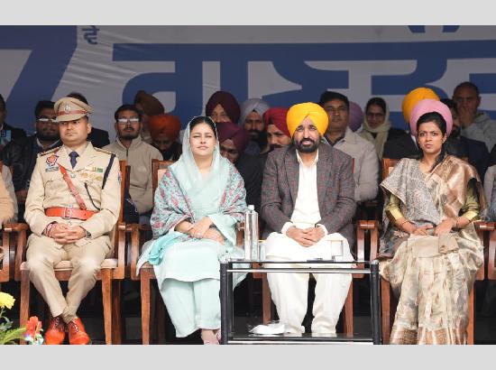 ਗਣਤੰਤਰ ਦਿਵਸ 'ਤੇ ਹੁਸ਼ਿਆਰਪੁਰ ਵਿੱਚ ਕੌਮੀ ਤਿਰੰਗਾ ਲਹਿਰਾਉਂਦੇ ਹੋਏ ਮੁੱਖ ਮੰਤਰੀ ਭਗਵੰਤ ਸਿੰਘ ਮਾਨ ਨੇ ਇਸ ਮੌਕੇ ਪੰਜਾਬ ਦੇ ਸੰਵਿਧਾਨਕ ਅਧਿਕਾਰਾਂ ਦੀ ਜ਼ੋਰਦਾਰ ਢੰਗ ਨਾਲ ਪੁਸ਼ਟੀ ਕਰਦਿਆਂ ਆਪਣੀ ਸਰਕਾਰ ਦੇ ਸ਼ਾਸਨ ਰਿਕਾਰਡ ਦਾ ਵਿਸਥਾਰਪੂਰਵਕ ਵੇਰਵਾ ਦਿੱਤਾ। ਭਾਰਤ ਦੇ ਆਜ਼ਾਦੀ ਸੰਗਰਾਮ ਵਿੱਚ ਪੰਜਾਬ ਦੀਆਂ ਬੇਮਿਸਾਲ ਕੁਰਬਾਨੀਆਂ ਅਤੇ ਦੇਸ਼ ਦੇ ਅੰਨਦਾਤਾ ਤੇ ਖੜਗਭੁਜਾ ਵਜੋਂ ਇਸ ਦੀ ਨਿਰੰਤਰ ਭੂਮਿਕਾ ਨੂੰ ਯਾਦ ਕਰਦਿਆਂ ਮੁੱਖ ਮੰਤਰੀ ਨੇ ਕਿਹਾ ਕਿ ਆਜ਼ਾਦੀ ਤੋਂ ਬਾਅਦ ਸੂਬੇ ਨੂੰ ਇਸ ਦੀ ਰਾਜਧਾਨੀ ਅਤੇ ਵੱਖਰੀ ਹਾਈ ਕੋਰਟ ਤੋਂ ਗ਼ੈਰਕਾਨੂੰਨੀ ਤਰੀਕੇ ਨਾਲ ਵਾਂਝਾ ਰੱਖਿਆ ਗਿਆ ਹੈ। ਉਨ੍ਹਾਂ ਨੇ ਸਪੱਸ਼ਟ ਕੀਤਾ ਕਿ ਚੰਡੀਗੜ੍ਹ, ਪੰਜਾਬ ਯੂਨੀਵਰਸਿਟੀ ਅਤੇ ਇਸ ਦੇ ਪਾਣੀ ਦੇ ਅਧਿਕਾਰਾਂ 'ਤੇ ਪੰਜਾਬ ਦੇ ਦਾਅਵੇ ਨੂੰ ਕਮਜ਼ੋਰ ਕਰਨ ਦੀਆਂ ਕੋਸ਼ਿਸ਼ਾਂ ਸਫ਼ਲ ਨਹੀਂ ਹੋਣਗੀਆਂ। ਉਨ੍ਹਾਂ ਜ਼ੋਰ ਦੇ ਕੇ ਕਿਹਾ ਕਿ ਪੰਜਾਬ ਆਪਣੇ ਹਿੱਤਾਂ ਦੀ ਰਾਖੀ ਲਈ ਹਰ ਰੋਜ਼ ਕਾਨੂੰਨੀ ਅਤੇ ਸੰਵਿਧਾਨਕ ਚਾਰਾਜੋਈ ਕਰਦਾ ਰਹੇਗਾ।