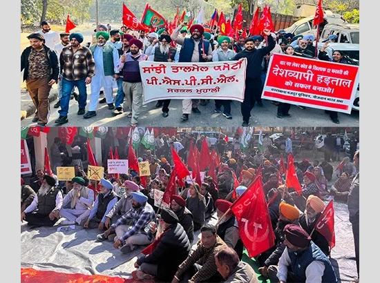 ਮੋਹਾਲੀ 'ਚ ਨੀਤੀਆਂ ਵਿਰੁੱਧ ਗਰਜੇ ਮੁਲਾਜ਼ਮ ਤੇ ਕਿਸਾਨ; ਮੋਦੀ, ਟਰੰਪ ਅਤੇ ਭਗਵੰਤ ਮਾਨ ਦੇ ਸਾੜੇ ਪੁਤਲੇ