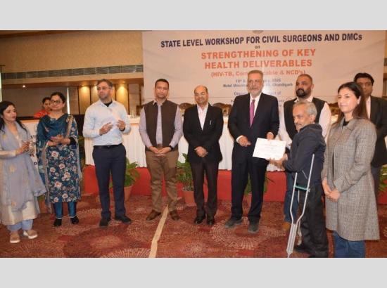 ਵਰਕਸ਼ਾਪ ਦੌਰਾਨ ਗੈਰ ਸੰਚਾਰੀ ਬਿਮਾਰੀਆਂ ਦੀ ਸਕਰੀਨਿੰਗ ਲਈ ਬੇਹਤਰ ਢੰਗ ਨਾਲ ਕੰਮ ਕਰਨ ਲਈ ਸਿਹਤ ਮੰਤਰੀ ਡਾਕਟਰ ਬਲਬੀਰ ਸਿੰਘ ਨੇ ਸਿਵਲ ਸਰਜਨ ਡਾ ਤਪਿੰਦਰਜੋਤ ਨੂੰ ਵਧਾਈ ਦਿੰਦਿਆਂ ਪ੍ਰਸ਼ੰਸ਼ਾ ਪੱਤਰ ਦਿੱਤਾ। ਇਸ ਮੌਕੇ ਡਿਪਟੀ ਮੈਡੀਕਲ ਕਮਿਸ਼ਨਰ ਡਾਕਟਰ ਨਵਦੀਪ ਗਰੇਵਾਲ ਵੀ ਮੌਜੂਦ ਰਹੇ। ਇਸ ਸਨਮਾਨ ਸੰਬੰਧੀ ਡਾਕਟਰ ਤਪਿੰਦਰਜੋਤ ਨੇ ਕਿਹਾ ਕਿ ਵਿੰਗ ਦੇ ਸਮੂਹ ਸਟਾਫ ਦੀ ਮਿਹਨਤ ਸਦਕਾ ਹੀ ਇਹ ਸੰਭਵ ਹੋਇਆ ਹੈ। ਉਨ੍ਹਾਂ ਕਿਹਾ ਕਿ ਸੂਬਾ ਸਰਕਾਰ ਵੱਲੋਂ ਦਿੱਤੀਆਂ ਜਾ ਰਹੀਆਂ ਵੱਖ ਵੱਖ ਸਿਹਤ ਸਹੂਲਤਾਂ ਹਰ ਲਾਭਪਾਤਰੀ ਨੂੰ ਦੇਣਾ ਉਨ੍ਹਾਂ ਦਾ ਮੁੱਖ ਮੰਤਵ ਹੈ।