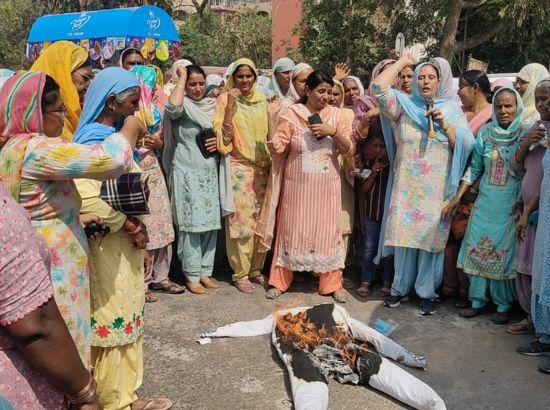 ਔਰਤਾਂ ਖਿਲਾਫ ਟਿੱਪਣੀਆਂ ਨੂੰ ਲੈ ਕੇ ਸ਼੍ਰੋਮਣੀ ਅਕਾਲੀ ਦਲ ਦੇ ਇਸਤਰੀ ਵਿੰਗ ਨੇ ਪੁਤਲਾ ਸਾੜਿਆ