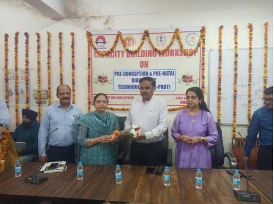 ਗੁਰਦਾਸਪੁਰ 13 ਮਾਰਚ PC PNDT ਐਕਟ ਅਧੀਨ ਬੇਟੀ ਬਚਾਓ ਬੇਟੀ ਪੜ੍ਹਾਓ ਵਿਸ਼ੇ ਤੇ ਦਫ਼ਤਰ ਸਿਵਲ ਸਰਜਨ ਗੁਰਦਾਸਪੁਰ ਵਿਖੇ ਕੈਪੈਸਿਟੀ ਬਿਲਡਿੰਗ ਵਰਕਸ਼ਾਪ ਕਰਵਾਈ ਗਈ। ਸਮਾਗਮ ਵਿੱਚ ਮੁੱਖ ਮਹਿਮਾਨ ਵਜੋਂ ਸਿਵਲ ਸਰਜਨ ਗੁਰਦਾਸਪੁਰ ਡਾਕਟਰ ਮਹੇਸ਼ ਕੁਮਾਰ ਪ੍ਰਭਾਕਰ ਮੌਜ਼ੂਦ ਰਹੇ। ਵਰਕਸ਼ਾਪ ਦਾ ਉਦੇਸ਼ ਕੁੜੀਆਂ ਦੀ ਜਨਮ ਦਰ ਵਧਾਉਣ ਲਈ ਉਪਰਾਲੇ ਕਰਨਾ ਸੀ।