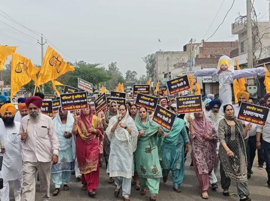 ਅੱਜ ਹਲਕਾ ਘਨੌਰ ਵਿੱਚ ਸ਼੍ਰੋਮਣੀ ਅਕਾਲੀ ਦਲ ਦੇ ਇਸਤਰੀ ਵਿੰਗ ਵੱਲੋਂ ਬੀਬੀ ਪਰਮਿੰਦਰ ਕੌਰ ਝਿੰਜਰ ਦੀ ਅਗਵਾਈ ਹੇਠ ਵੱਡਾ ਇਕੱਠ ਕਰਕੇ ਪੰਜਾਬ ਸਰਕਾਰ ਅਤੇ ਮੁੱਖ ਮੰਤਰੀ ਭਗਵੰਤ ਮਾਨ ਖ਼ਿਲਾਫ਼ ਜ਼ੋਰਦਾਰ ਰੋਸ ਪ੍ਰਦਰਸ਼ਨ ਕੀਤਾ ਗਿਆ। ਇਸ ਮੌਕੇ ਹਜ਼ਾਰਾਂ ਦੀ ਗਿਣਤੀ ਵਿੱਚ ਬੀਬੀਆਂ ਨੇ ਇਕੱਠੇ ਹੋ ਕੇ ਸਰਕਾਰ ਦੀਆਂ ਨੀਤੀਆਂ ਅਤੇ ਬਿਆਨਬਾਜ਼ੀ ਦਾ ਕੜਾ ਵਿਰੋਧ ਕੀਤਾ। ਰੋਸ ਮਾਰਚ ਦੌਰਾਨ ਪ੍ਰਦਰਸ਼ਨਕਾਰੀਆਂ ਵੱਲੋਂ ਮੁੱਖ ਮੰਤਰੀ ਭਗਵੰਤ ਮਾਨ ਦਾ ਪੁਤਲਾ ਫੂਕਿਆ ਗਿਆ ਅਤੇ ਪੰਜਾਬ ਸਰਕਾਰ ਖ਼ਿਲਾਫ਼ ਜ਼ੋਰਦਾਰ ਨਾਅਰੇਬਾਜ਼ੀ ਕੀਤੀ ਗਈ।