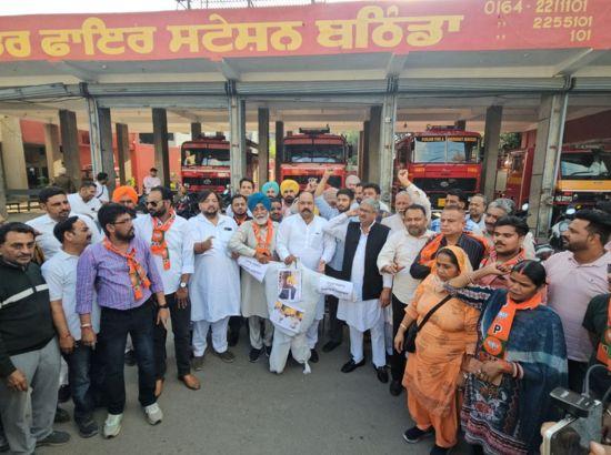 ਬਠਿੰਡਾ, 23 ਮਾਰਚ 2026 :ਵੇਅਰਹਾਊਸ ਦੇ ਡੀਐਮ ਗਗਨਦੀਪ ਸਿੰਘ ਰੰਧਾਵਾ ਦੀ ਆਤਮਹੱਤਿਆ ਨੂੰ ਲੈ ਕੇ ਭਾਰਤੀ ਜਨਤਾ ਪਾਰਟੀ ਜ਼ਿਲ੍ਹਾ ਬਠਿੰਡਾ ਨੇ ਪੰਜਾਬ ਸਰਕਾਰ ਖ਼ਿਲਾਫ਼ ਕੀਤੇ ਰੋਸ ਪ੍ਰਦਰਸ਼ਨ ਦੌਰਾਨ ਮਾਮਲੇ ਦੀ ਸੀਬੀਆਈ ਤੂੰ ਜਾਂਚ ਕਰਵਾਉਣ ਦੀ ਮੰਗ ਕੀਤੀ। ਜ਼ਿਲ੍ਹਾ ਪ੍ਰਧਾਨ ਸਰੂਪਚੰਦ ਸਿੰਗਲਾ ਦੀ ਅਗਵਾਈ ਹੇਠ ਫਾਇਰ ਬ੍ਰਿਗੇਡ ਚੌਂਕ ‘ਤੇ ਰੋਜ਼ਾਨਾ ਪ੍ਰਦਰਸ਼ਨ ਕਰਦੇ ਹੋਏ ਭਾਜਪਾ ਵਰਕਰਾਂ ਨੇ ਪੰਜਾਬ ਸਰਕਾਰ ਦਾ ਪੁਤਲਾ ਫੂਕਿਆ ਅਤੇ ਜ਼ੋਰਦਾਰ ਨਾਰੇਬਾਜ਼ੀ ਕੀਤੀ।