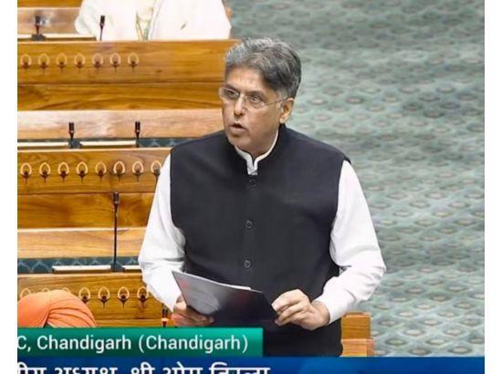 ਲੋਕ ਸਭਾ ਵਿੱਚ ਮਨੀਸ਼ ਤਿਵਾੜੀ ਨੇ ਚੰਡੀਗੜ੍ਹ ਵਿੱਚ ਐੱਮਐੱਸਐੱਮਈ ਫਰੇਮਵਰਕ ਲਾਗੂ ਕਰਨ ਬਾਰੇ ਉਠਾਏ ਸਵਾਲ