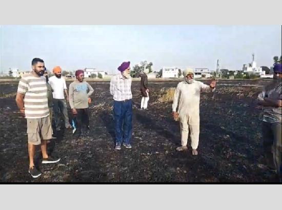 ਬਿਜਲੀ ਦੀਆਂ ਤਾਰਾਂ ਨੇ ਕਿਸਾਨਾਂ ਦੇ ਸੁਪਨਿਆਂ ਤੇ ਫੇਰਿਆ ਪਾਣੀ -ਦੱਸ ਏਕੜ ਪੱਕੀ ਫਸਲ ਤੇ 100 ਏਕੜ ਦੇ ਕਰੀਬ ਤੂੜੀ ਸੜ ਕੇ ਹੋਈ ਸਵਾਹ