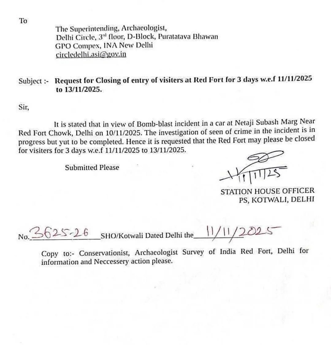 ਨਵੀਂ ਦਿੱਲੀ, 11 ਨਵੰਬਰ, 2025 : ਦਿੱਲੀ 'ਚ ਸੋਮਵਾਰ (10 ਨਵੰਬਰ) ਸ਼ਾਮ ਨੂੰ ਲਾਲ ਕਿਲ੍ਹਾ ਮੈਟਰੋ ਸਟੇਸ਼ਨ ਨੇੜੇ ਹੋਏ ਭਿਆਨਕ ਕਾਰ ਧਮਾਕੇ ਤੋਂ ਬਾਅਦ, ਅੱਜ (ਮੰਗਲਵਾਰ) ਨੂੰ ਸੁਰੱਖਿਆ ਏਜੰਸੀਆਂ ਨੇ ਵੱਡੇ ਕਦਮ ਚੁੱਕੇ ਹਨ। ਜਾਂਚ ਅਤੇ ਸੁਰੱਖਿਆ ਕਾਰਨਾਂ ਕਰਕੇ, ਭਾਰਤੀ ਪੁਰਾਤੱਤਵ ਸਰਵੇਖਣ (ASI) ਨੇ ਲਾਲ ਕਿਲ੍ਹਾ (Red Fort) ਨੂੰ ਅਗਲੇ 3 ਦਿਨਾਂ ਲਈ ਬੰਦ ਕਰਨ ਦਾ ਫੈਸਲਾ ਕੀਤਾ ਹੈ। ਅਜਿਹੇ 'ਚ ਹੁਣ 13 ਨਵੰਬਰ ਤੱਕ ਕਿਸੇ ਵੀ ਸੈਲਾਨੀ ਨੂੰ ਲਾਲ ਕਿਲ੍ਹਾ ਕੰਪਲੈਕਸ 'ਚ ਦਾਖਲ ਹੋਣ ਦੀ ਇਜਾਜ਼ਤ ਨਹੀਂ ਦਿੱਤੀ ਜਾਵੇਗੀ।