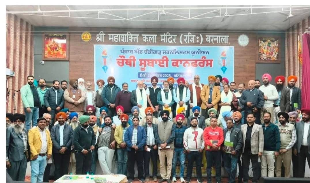 ਚੰਡੀਗੜ੍ਹ 1 ਦਿਸੰਬਰ 2025 : ਪੰਜਾਬ ਅਤੇ ਚੰਡੀਗੜ੍ਹ ਜਰਨਲਿਸਟਸ ਯੂਨੀਅਨ ਦੀ ਬਰਨਾਲਾ ਵਿਖੇ ਹੋਈ ਚੌਥੀ ਸੂਬਾਈ ਕਾਨਫਰੰਸ ਵਿਚ ਸਰਬਸੰਮਤੀ ਨਾਲ ਬਲਬੀਰ ਸਿੰਘ ਜੰਡੂ ਚੇਅਰਮੈਨ, ਜੈ ਸਿੰਘ ਛਿੱਬਰ ਪ੍ਰਧਾਨ, ਸੰਤੋਖ ਗਿੱਲ ਸਕੱਤਰ ਜਨਰਲ ਅਤੇ ਬਿੰਦੂ ਸਿੰਘ ਖ਼ਜ਼ਾਨਚੀ ਚੁਣੇ ਗਏ। ਇਸ ਤੋਂ ਇਲਾਵਾ ਭੂਸ਼ਨ ਸੂਦ ਸੀਨੀਅਰ ਮੀਤ ਪ੍ਰਧਾਨ, ਰਾਜਨ ਮਾਨ, ਗਗਨਦੀਪ ਅਰੋੜਾ, ਜਗਸੀਰ ਸਿੰਘ ਸੰਧੂ, ਜਸਵੰਤ ਸਿੰਘ ਥਿੰਦ ਮੀਤ ਪ੍ਰਧਾਨ, ਦਵਿੰਦਰ ਸਿੰਘ ਭੰਗੂ ਜਥੇਬੰਦਕ ਸਕੱਤਰ, ਐਨ.ਪੀ ਧਵਨ, ਬਲਵਿੰਦਰ ਸਿੰਘ ਸਿਪਰੇ, ਸਰਬਜੀਤ ਭੱਟੀ ਅਤੇ ਵੀਰਪਾਲ ਭਗਤਾ ਸਕੱਤਰ ਚੁਣੇ ਗਏ। ਇਸ ਮੌਕੇ ਜਥੇਬੰਦੀ ਦੇ ਸੰਵਿਧਾਨ ਵਿੱਚ ਵੀ ਕੁਝ ਸੋਧਾਂ ਨੂੰ ਸਰਬਸੰਮਤੀ ਨਾਲ ਪ੍ਰਵਾਨਗੀ ਦਿੱਤੀ ਗਈ।