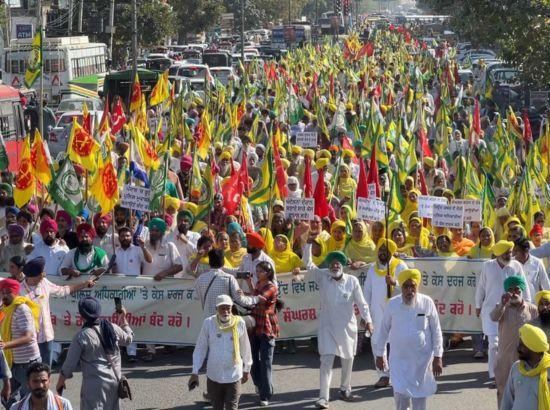 ਬਠਿੰਡਾ,6 ਮਾਰਚ 2026 : ਪਿੰਡ ਜਿਉਂਦ ਵਿਖੇ ਭਾਰਤੀ ਕਿਸਾਨ ਯੂਨੀਅਨ ਏਕਤਾ ਉਗਰਾਹਾਂ ਦੀ ਅਗਵਾਈ ਹੇਠ ਇਕੱਠੇ ਹੋਏ ਮਜ਼ਦੂਰਾਂ ਕਿਸਾਨਾਂ 'ਤੇ ਪੁਲਿਸ ਜਬਰ ਅਤੇ ਸੰਘਰਸ਼ ਕਰਨ ਦੇ ਹੱਕ 'ਤੇ ਮੜ੍ਹੀਆਂ ਰੋਕਾਂ ਖਿਲਾਫ ਅੱਜ਼ ਸੈਂਕੜੇ ਔਰਤਾਂ ਸਮੇਤ ਹਜ਼ਾਰਾਂ ਕਿਸਾਨਾਂ ,ਮਜ਼ਦੂਰਾਂ, ਮੁਲਾਜ਼ਮਾਂ ਨੇ ਸੰਘਰਸ਼ੀੀ ਜੋਸ਼ ਨਾਲ ਬਠਿੰਡਾ ਦੀਆਂ ਸੜਕਾਂ 'ਤੇ ਰੋਹ ਭਰਪੂਰ ਮੁਜ਼ਾਹਰਾ ਕਰਕੇ ਪੁਲਿਸ ਵੱਲੋਂ ਲੋਕ ਮਨਾਂ ਤੇ ਦਹਿਸ਼ਤ ਪਾਉਣ ਦੇ ਮਨਸੂਬਿਆਂ ਨੂੰ ਚਕਨਾਚੂਰ ਕਰ ਦਿੱਤਾ। ਇਸ ਮੁਜ਼ਾਹਰੇ ਤੋਂ ਪਹਿਲਾਂ ਪੁੱਡਾ ਗਰਾਊਂਡ ਵਿਖੇ ਜੁੜੇ ਵਿਸ਼ਾਲ ਇਕੱਠ ਦੌਰਾਨ ਵੱਖ ਵੱਖ ਬੁਲਾਰਿਆਂ ਨੇ ਸੰਬੋਧਨ ਕਰਦਿਆਂ ਜਿਉਂਦ ਵਿਖੇ ਨੌਜਵਾਨ ਚਰਨਜੀਤ ਸਿੰਘ ਦੀ ਲੱਤ ਨੂੰ ਚਕਨਾਚੂਰ ਕਰਨ ਤੇ ਨੌਜਵਾਨ ਪ੍ਰਨੀਤ ਸਿੰਘ ਦਾ ਹੱਥ ਦੋਫਾੜ ਕਰਨ ਅਤੇ ਮਜ਼ਦੂਰਾਂ ਕਿਸਾਨਾਂ 'ਤੇ ਜ਼ਬਰ ਢਾਹੁਣ ਦੇ ਦੋਸ਼ੀ ਐਸ ਐਸ ਪੀ ਜੋਯਤੀ ਯਾਦਵ ਸਮੇਤ ਸਾਰੇ ਅਧਿਕਾਰੀਆਂ ਤੇ ਪਰਚੇ ਦਰਜ ਕਰਨ ਦੀ ਜ਼ੋਰਦਾਰ ਮੰਗ ਕੀਤੀ ਗਈ।