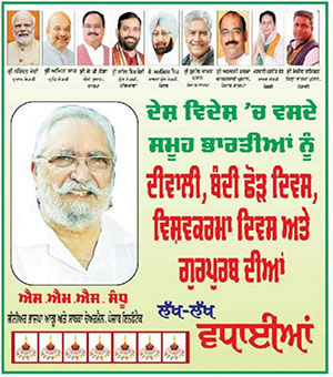 ਵਿਧਾਇਕ ਸ਼ੈਰੀ ਕਲਸੀ ਨੇ ਦੀਵਾਲੀ ਤੇ ਬੰਦੀ ਛੋੜ ਦਿਵਸ ਦੀ ਦਿੱਤੀ ਮੁਬਾਰਕਬਾਦ