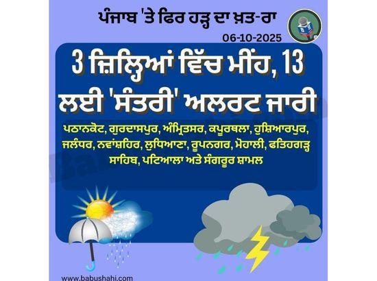Punjab Weather : 3 ਜ਼ਿਲ੍ਹਿਆਂ ਵਿੱਚ ਮੀਂਹ, 13 ਲਈ 'ਸੰਤਰੀ' ਅਲਰਟ ਜਾਰੀ