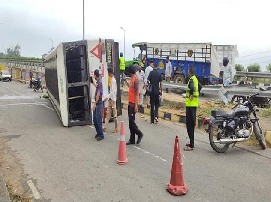 ਪੱਟਾ ਟੁੱਟਣ ਕਾਰਨ ਡਰਾਈਵਰ ਨੇ ਬੱਸ ਤੋਂ ਕੰਟਰੋਲ ਗੁਆ ਦਿੱਤਾ ਅਤੇ ਉਹ ਸੜਕ 'ਤੇ ਹੀ ਪਲਟ ਗਈ। ਬੱਸ ਪਲਟਦਿਆਂ ਹੀ ਯਾਤਰੀਆਂ ਵਿੱਚ ਚੀਕ-ਚਿਹਾੜਾ ਮੱਚ ਗਿਆ। ਆਸ-ਪਾਸ ਦੇ ਲੋਕ ਅਤੇ ਪੁਲਿਸ ਤੁਰੰਤ ਮੌਕੇ 'ਤੇ ਪਹੁੰਚੇ।