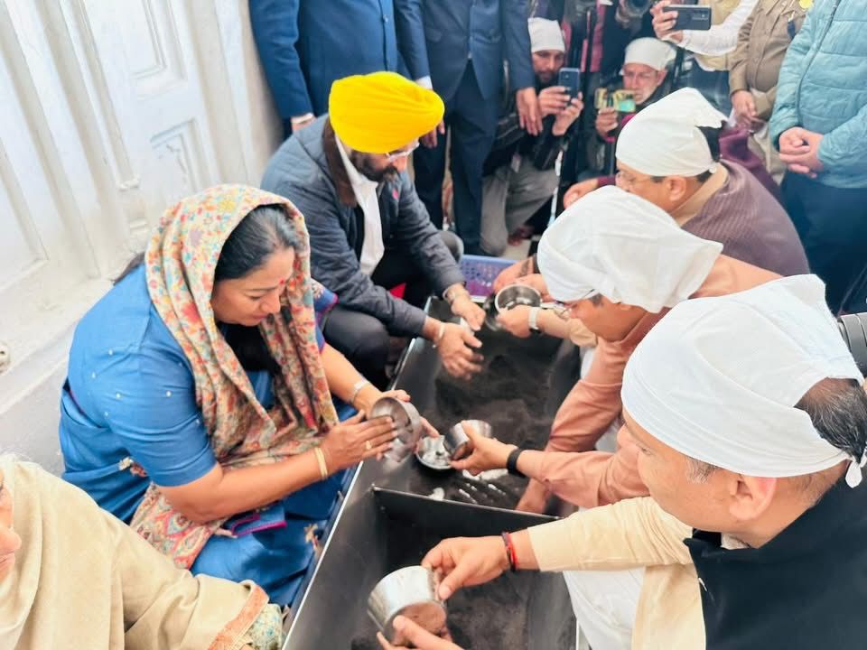 ਅੰਮ੍ਰਿਤਸਰ, 8 ਨਵੰਬਰ 2025 : ਦਿੱਲੀ ਦੀ ਮੁੱਖ ਮੰਤਰੀ ਰੇਖਾ ਗੁਪਤਾ ਅਤੇ ਉਨ੍ਹਾਂ ਦੇ ਮੰਤਰੀ ਮੰਡਲ ਦੇ ਸਾਥੀਆਂ ਨੇ ਸ੍ਰੀ ਹਰਿਮੰਦਰ ਸਾਹਿਬ, ਦਰਬਾਰ ਸਾਹਿਬ ਵਿਖੇ ਨਤਮਸਤਕ ਹੋਣ ਤੋਂ ਬਾਅਦ ਵਿਸ਼ੇਸ਼ ਸੇਵਾ ਨਿਭਾਈ।