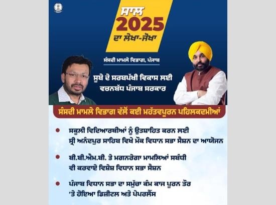 ਸੰਸਦੀ ਮਾਮਲੇ ਵਿਭਾਗ ਦਾ ਲੇਖਾ-ਜੋਖਾ; ਸਕੂਲੀ ਵਿਦਿਆਰਥੀਆਂ ਨੂੰ ਉਤਸ਼ਾਹਿਤ ਕਰਨ ਲਈ ਸ੍ਰੀ ਅਨੰਦਪੁਰ ਸਾਹਿਬ ਵਿਖੇ ਮੌਕ ਵਿਧਾਨ ਸਭਾ ਸੈਸ਼ਨ ਕਰਵਾਇਆ