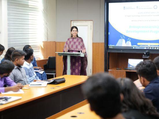 ਉਦਘਾਟਨੀ ਸੈਸ਼ਨ ਵਿੱਚ ਮੁੱਖ ਮਹਿਮਾਨ ਵਜੋਂ ਸ਼੍ਰੀਮਤੀ ਚੰਦਰਜਯੋਤੀ, ਆਈਏਐੱਸ (ਵਾਧੂ ਡਿਪਟੀ ਕਮਿਸ਼ਨਰ (ਵਿਕਾਸ), ਰੂਪਨਗਰ) ਸ਼ਾਮਲ ਹੋਏ, ਜਿਨ੍ਹਾਂ ਨੇ ਉੱਦਮਤਾ ਬਾਰੇ ਇੱਕ ਪ੍ਰੇਰਨਾਦਾਇਕ ਉਦਘਾਟਨੀ ਭਾਸ਼ਣ ਦਿੱਤਾ। ਉਨ੍ਹਾਂ ਨੇ ਅੱਜ ਦੇ ਪ੍ਰਤੀਯੋਗੀ ਮਾਹੌਲ ਵਿੱਚ ਨਵੀਨਤਾ, ਦ੍ਰਿੜ੍ਹਤਾ ਅਤੇ ਸਰਗਰਮ ਅਗਵਾਈ ਦੀ ਮਹੱਤਤਾ ਉੱਤੇ ਜ਼ੋਰ ਦਿੱਤਾ ਅਤੇ ਪੰਜ ਦਿਨਾਂ ਪ੍ਰੋਗਰਾਮ ਲਈ ਇੱਕ ਊਰਜਾਵਾਨ ਅਤੇ ਪ੍ਰੇਰਕ ਮਾਹੌਲ ਸਿਰਜਿਆ।