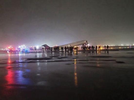 ਨਿਊਯਾਰਕ: 23 ਮਾਰਚ, 2026 : ਨਿਊਯਾਰਕ ਦੇ ਵਿਅਸਤ ਲਾ-ਗਾਰਡੀਆ (LaGuardia) ਹਵਾਈ ਅੱਡੇ ਤੋਂ ਇੱਕ ਬੇਹੱਦ ਚਿੰਤਾਜਨਕ ਖ਼ਬਰ ਸਾਹਮਣੇ ਆਈ ਹੈ। ਏਅਰ ਕੈਨੇਡਾ ਦਾ ਇੱਕ ਜਹਾਜ਼ ਲੈਂਡਿੰਗ ਦੇ ਸਮੇਂ ਰਨਵੇਅ 'ਤੇ ਖੜ੍ਹੀ ਇੱਕ ਅੱਗ ਬੁਝਾਊ ਗੱਡੀ (Fire Truck) ਨਾਲ ਟਕਰਾ ਗਿਆ। ਇਸ ਜ਼ੋਰਦਾਰ ਟੱਕਰ ਕਾਰਨ ਜਹਾਜ਼ ਵਿੱਚ ਸਵਾਰ ਕਈ ਯਾਤਰੀਆਂ ਅਤੇ ਸਟਾਫ਼ ਦੇ ਜ਼ਖਮੀ ਹੋਣ ਦੀ ਰਿਪੋਰਟ ਹੈ। ਹਾਦਸੇ ਤੋਂ ਤੁਰੰਤ ਬਾਅਦ ਪੂਰੇ ਹਵਾਈ ਅੱਡੇ ਨੂੰ ਅਸਥਾਈ ਤੌਰ 'ਤੇ ਬੰਦ ਕਰ ਦਿੱਤਾ ਗਿਆ ਹੈ।