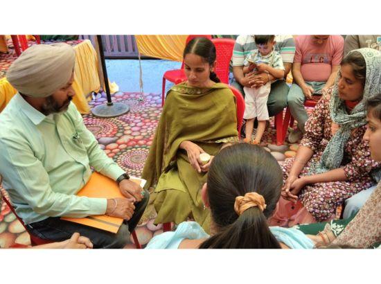 ਫੋਟੋ ਕੈਪਸ਼ਨ: ਪੰਜਾਬ ਰਾਜ ਮਹਿਲਾ ਕਮਿਸ਼ਨ ਦੀ ਸੀਨੀਅਰ ਵਾਈਸ ਚੇਅਰਪਰਸਨ ਬੀਬਾ ਗੀਤਾ ਗਿੱਲ ਪੀੜਤ ਮਹਿਲਾਵਾਂ ਦੇ ਵਫਦ ਨੂੰ ਮਿਲਣ ਮੌਕੇ ਨਾਲ ਹਨ ਘੱਟ ਗਿਣਤੀ ਲੋਕ ਭਲਾਈ ਸੰਸਥਾ ਦੇ ਪ੍ਰਧਾਨ ਸ੍ਰ ਸਤਨਾਮ ਸਿੰਘ ਗਿੱਲ।