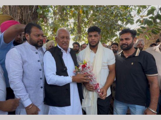 ਲਹਿਰਾਗਗਾ/ਸੰਗਰੂਰ, 19 ਅਪ੍ਰੈਲ, 2026 : ਕੈਬਨਿਟ ਮੰਤਰੀ ਬਰਿੰਦਰ ਕੁਮਾਰ ਗੋਇਲ ਵੱਲੋਂ ਵਿਧਾਨ ਸਭਾ ਹਲਕਾ ਲਹਿਰਾਗਗਾ ਦੇ ਪਿੰਡ ਬਲਰਾ ਵਿਖੇ ਪਹੁੰਚ ਕੇ ਕਬੱਡੀ ਖਿਡਾਰੀ ਮਨਦੀਪ ਸਿੰਘ ਦਾ ਵਿਸ਼ੇਸ਼ ਸਨਮਾਨ ਕੀਤਾ ਗਿਆ। ਮਨਦੀਪ ਸਿੰਘ ਨੇ ਪਿੰਡ ਭਲੱਥ ਵਿਖੇ ਹੋਏ ਕਬੱਡੀ ਟੂਰਨਾਮੈਂਟ ਵਿੱਚ ਸ਼ਾਨਦਾਰ ਪ੍ਰਦਰਸ਼ਨ ਕਰਦਿਆਂ ਬੁਲੇਟ ਮੋਟਰਸਾਈਕਲ ਸਮੇਤ ਕਰੀਬ 14 ਲੱਖ ਰੁਪਏ ਦਾ ਇਨਾਮ ਜਿੱਤ ਕੇ ਆਪਣੇ ਇਲਾਕੇ ਦਾ ਨਾਮ ਰੋਸ਼ਨ ਕੀਤਾ ਹੈ। ਜਿਕਰਯੋਗ ਹੈ ਕਿ ਇਸ ਤੋਂ ਪਹਿਲਾਂ ਖਿਡਾਰੀ ਵੱਖ ਵੱਖ ਸਥਾਨਾਂ 'ਤੇ ਹੋਏ ਕਬੱਡੀ ਮੁਕਾਬਲਿਆਂ ਵਿੱਚ ਘੋੜੀਆਂ, ਗੱਡੀਆਂ, ਨਗਦ ਇਨਾਮ ਆਦਿ ਜਿੱਤ ਕੇ ਇਲਾਕੇ ਦਾ ਨਾਮ ਰੋਸ਼ਨ ਕਰ ਚੁੱਕਾ ਹੈ।