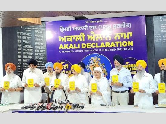 ਚੰਡੀਗੜ੍ਹ, 23 ਅਪ੍ਰੈਲ 2026- ਦੋ ਦਸੰਬਰ 2024 ਨੂੰ ਸ੍ਰੀ ਅਕਾਲ ਤਖਤ ਸਾਹਿਬ ਤੋਂ ਹੋਏ ਹੁਕਮਨਾਮਿਆ ਦੀ ਰੌਸ਼ਨੀ ਵਿੱਚ ਸ਼੍ਰੋਮਣੀ ਅਕਾਲੀ ਦਲ ਪੁਨਰ ਸੁਰਜੀਤ ਹੋਇਆ ਸੀ। ਜਿਸਨੇ ਉਹਨਾਂ ਆਦੇਸ਼ਾਂ ਅਨੁਸਾਰ ਨਵੀਂ ਭਰਤੀ ਕਰਕੇ ਡੈਲੀਗੇਟ ਇਜਲਾਸ ਰਾਹੀਂ ਲੀਡਰਸ਼ਿਪ ਉਭਾਰਨ ਦਾ ਉਪਰਾਲਾ ਕੀਤਾ। ਇਹਨਾਂ ਗੱਲਾਂ ਦਾ ਪ੍ਰਗਟਾਵਾ ਗਿਆਨੀ ਹਰਪ੍ਰੀਤ ਸਿੰਘ ਨੇ ਇਕ ਪ੍ਰੈੱਸ ਕਾਨਫਰੰਸ ਨੂੰ ਸੰਬੋਧਨ ਕਰਦਿਆਂ ਕੀਤਾ। ਉਹਨਾਂ ਕਿਹਾ ਕਿ ਉਸ ਡੈਲੀਗੇਟ ਇਜਲਾਸ ਵਿੱਚ ਹੀ ਸਾਰੇ ਸੀਨੀਅਰ ਲੀਡਰਾਂ ਦੀ ਸਲਾਹ ਨਾਲ ਨਵੀਂ ਲੀਡਰਸ਼ਿਪ ਲਈ ਨਵਾਂ ਪੰਥ-ਪੰਜਾਬ ਪੱਖੀ ਏਜੰਡਾ ਨਿਰਧਾਰਿਤ ਕਰਨ ਲਈ ਇਕ ਸੱਤ ਮੈਂਬਰੀ ਕਮੇਟੀ ਬਣਾਈ ਗਈ ਸੀ। ਸ ਇਕਬਾਲ ਸਿੰਘ ਝੂੰਦਾਂ ਦੀ ਅਗਵਾਈ ਹੇਠ ਬਣੀ ਉਸ ਕਮੇਟੀ ਨੇ ਪੈਂਤੀ ਤੋਂ ਵੱਧ ਮੀਟਿੰਗਾਂ ਕਰਕੇ, ਡੂੰਘੀ ਵਿਚਾਰ ਚਰਚਾ ਤੋਂ ਬਾਅਦ ਇਹ ਦਸਤਾਵੇਜ਼ ਤਿਆਰ ਕੀਤਾ ਹੈ। ਜਿਸ ਨੂੰ ਸੀਨੀਅਰ ਲੀਡਰਸ਼ਿਪ ਨੇ ਪਾਰਟੀ ਪੱਧਰ 'ਤੇ ਲੰਬੀ ਵਿਚਾਰ ਚਰਚਾ ਤੋਂ ਬਾਅਦ ਪ੍ਰੈੱਸ ਰਾਹੀਂ ਪੰਜਾਬ ਦੇ ਨਾਂ ਜਾਰੀ ਕਰਨ ਦਾ ਫੈਸਲਾ ਕੀਤਾ ਹੈ। ਇਸ ਦਸਤਾਵੇਜ ਵਿੱਚ ਪੰਥ ਦੀ ਚੜ੍ਹਦੀ ਕਲਾ ਅਤੇ ਪੰਥ ਦੇ ਬੋਲ ਬਾਲੇ ਦੀ ਗੱਲ ਕਰਦਿਆਂ ਪੰਜਾਬ ਦੀ ਨੁਹਾਰ ਬਦਲਣ ਲਈ ਹਰ ਵਿਸ਼ੇ ਨੂੰ ਛੋਹਿਆ ਗਿਆ ਹੈ।