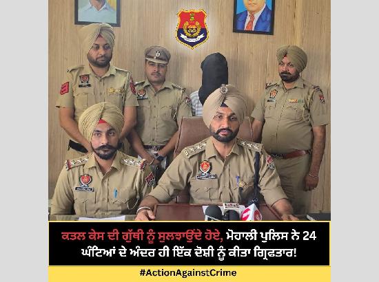 ਐਸ.ਏ.ਐਸ. ਨਗਰ 27 ਅਪ੍ਰੈਲ 2025 : ਕਾਲਕਾ ਰੋਡ ਜੀਰਕਪੁਰ 'ਤੇ ਮਿਲੀ ਇਕ ਅਣਪਛਾਤੀ ਲਾਸ਼ ਨੇ ਸਥਾਨਕ ਲੋਕਾਂ ਵਿੱਚ ਸਨਸਨੀ ਫੈਲਾ ਦਿੱਤੀ , ਇਹ ਮਾਮਲਾ ਗੰਭੀਰ ਰੂਪ ਧਾਰਨ ਕਰ ਗਿਆ, ਪਰ ਐਸ.ਏ.ਐਸ. ਨਗਰ ਪੁਲਿਸ ਨੇ ਤੇਜ਼ੀ ਅਤੇ ਪ੍ਰਭਾਵਸ਼ਾਲੀ ਢੰਗ ਨਾਲ ਕਾਰਵਾਈ ਕਰਦਿਆਂ ਸਿਰਫ 24 ਘੰਟਿਆਂ ਵਿੱਚ ਕਤਲ ਦੀ ਗੁੱਥੀ ਸੁਲਝਾ ਲਈ , ਪੁਲਿਸ ਨੇ ਚੁਸਤ ਕਾਰਵਾਈ ਕਰਦਿਆਂ ਦੋਸ਼ੀ ਨੂੰ ਗ੍ਰਿਫਤਾਰ ਕਰ ਲਿਆ ਹੈ ਅਤੇ ਇਸ ਮਾਮਲੇ ਦੀ ਪੂਰੀ ਜਾਂਚ ਜਾਰੀ ਹੈ ਅਤੇ ਹੋਰ ਖੁਲਾਸਿਆਂ ਦੀ ਉਮੀਦ ਕੀਤੀ ਜਾ ਰਹੀ ਹੈ