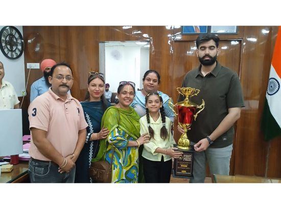 ਬਠਿੰਡਾ, 7 ਅਕਤੂਬਰ 2025: ਬਠਿੰਡਾ ਦੀ ਨੌ ਸਾਲਾ ਕਲਾਕਾਰ ਖਵਾਹੀਸ਼ ਖੰਗਵਾਲ ਪੁੱਤਰੀ ਸ਼੍ਰੀਮਤੀ ਵੀਰਪਾਲ-ਸ਼੍ਰੀ ਸਾਹਿਲ ਖੰਗਵਾਲ ਵਾਸੀ ਅਰਜੁਨ ਨਗਰ, ਗਲੀ ਨੰਬਰ 5, ਮੇਅਰ ਵਾਰਡ ਨੰਬਰ 48, ਬਠਿੰਡਾ ਨੇ ਆਪਣੀ ਪ੍ਰਤਿਭਾ ਦਾ ਪ੍ਰਦਰਸ਼ਨ ਕਰਦਿਆਂ ਰਾਜ ਪੱਧਰ 'ਤੇ ਸ਼ਹਿਰ ਦਾ ਨਾਮ ਰੌਸ਼ਨ ਕੀਤਾ ਹੈ।ਕਾਨ੍ਹਾ ਡਾਂਸ ਅਕੈਡਮੀ, ਬਠਿੰਡਾ ਦੀ ਵਿਦਿਆਰਥਣ ਖਵਾਹੀਸ਼ ਨੇ ਹਾਲ ਹੀ ਵਿੱਚ ਮੋਗਾ ਵਿੱਚ ਹੋਈ ਰਾਜ ਪੱਧਰੀ ਗਿੱਧਾ ਚੈਂਪੀਅਨਸ਼ਿਪ ਵਿੱਚ ਪਹਿਲਾ ਸਥਾਨ ਪ੍ਰਾਪਤ ਕਰਕੇ ਬਠਿੰਡਾ ਦਾ ਨਾਮ ਰੌਸ਼ਨ ਕੀਤਾ ਹੈ। ਮੇਅਰ ਸ੍ਰੀ ਪਦਮਜੀਤ ਸਿੰਘ ਮਹਿਤਾ ਨੇ ਇਸ ਸ਼ਾਨਦਾਰ ਪ੍ਰਾਪਤੀ ਲਈ ਉਸ ਨੂੰ ਸਨਮਾਨਿਤ ਕੀਤਾ ਅਤੇ ਕਿਹਾ ਕਿ ਬਠਿੰਡਾ ਦੀ ਇਹ ਨੰਨ੍ਹੀ ਧੀ ਭਵਿੱਖ ਵਿੱਚ ਰਾਜ ਅਤੇ ਦੇਸ਼ ਦਾ ਨਾਮ ਰੌਸ਼ਨ ਕਰੇਗੀ।