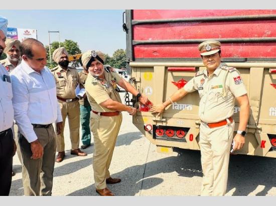 ਵਿਸ਼ੇਸ਼ ਡੀਜੀਪੀ ਟ੍ਰੈਫਿਕ ਅਤੇ ਸੜਕ ਸੁਰੱਖਿਆ ਏ.ਐਸ. ਰਾਏ ਨੇ ਭਾਗੋ ਮਾਜਰਾ ਟੋਲ ਪਲਾਜ਼ਾ ਤੋਂ ਟਰੈਕਟਰ-ਟਰਾਲੀਆਂ `ਤੇ ਰਿਫਲੈਕਟਰ-ਸਟਿੱਕਰ ਚਿਪਕਾ ਕੇ ਕੀਤੀ ਮੁਹਿੰਮ ਦੀ ਸ਼ੁਰੂਆਤ