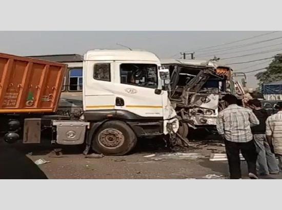 ਖੰਨਾ (ਪੰਜਾਬ), 28 ਅਕਤੂਬਰ, 2025 : ਪੰਜਾਬ ਦੇ ਖੰਨਾ (Khanna) ਵਿਖੇ ਅੱਜ (ਮੰਗਲਵਾਰ) ਨੂੰ ਨੈਸ਼ਨਲ ਹਾਈਵੇ (National Highway) 'ਤੇ ਮੈਕਡੋਨਲਡਜ਼ (McDonald's) ਨੇੜੇ ਉਸ ਵੇਲੇ ਚੀਕ-ਚਿਹਾੜਾ ਮੱਚ ਗਿਆ, ਜਦੋਂ ਇੱਕ ਤੇਜ਼ ਰਫ਼ਤਾਰ ਟਰਾਲਾ (truck) ਬੇਕਾਬੂ ਹੋ ਕੇ ਡਿਵਾਈਡਰ ਟੱਪਦਾ ਹੋਇਆ ਦੂਜੇ ਪਾਸਿਓਂ ਆ ਰਹੀ ਪੰਜਾਬ ਰੋਡਵੇਜ਼ (Punjab Roadways) ਦੀ ਬੱਸ ਨਾਲ ਜਾ ਟਕਰਾਇਆ।