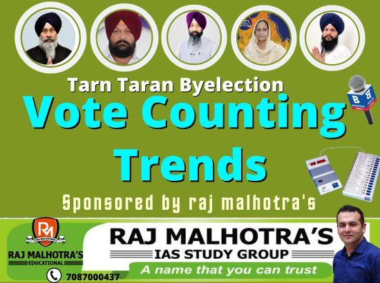 Tarn Taran Bypoll (Round 9): 'AAP' 5510 ਵੋਟਾਂ ਨਾਲ ਅੱਗੇ, ਦੂਜੇ ਨੰਬਰ ਤੇ ਅਕਾਲੀ ਦਲ (11:05 AM)