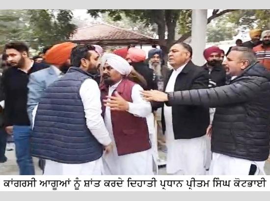 ਜਦੋਂ ਡਾਲਵੀ ਕਾਂਗਰਸੀ ਆਗੂਆਂ ਨੂੰ ਵਰਕਰਾਂ ਜਾਂ ਹਮਾਇਤੀਆਂ ਦੀਆਂ ਬੱਸਾਂ ਭਰ ਕੇ ਲਿਆਉਣ ਲਈ ਕਹਿ ਰਹੇ ਸਨ ਤਾਂ ਇਸ ਦੌਰਾਨ ਦੋਵਾਂ ਆਗੂਆਂ ਦੇ ਹਮਾਇਤੀ ਇੱਕ ਦੂਸਰੇ ਨਾਲ ਤਕਰਾਰ ਸ਼ੁਰੂ ਕਰ ਦਿੱਤੀ। ਸੂਤਰ ਦੱਸਦੇ ਹਨ ਕਿ ਕਮਰੇ ਨੂੰ ਅੰਦਰੋਂ ਕੁੰਡੀ ਲੱਗੀ ਹੋਈ ਸੀ ਜਿਸ ਦੇ ਚੱਲਦਿਆਂ ਦੋਵੇਂ ਧਿਰਾਂ ਆਪਸ ’ਚ ਕਾਫੀ ਧੱਕਾ ਮੁੱਕੀ ਹੋਈ। ਮਹੌਲ ਵਿਗੜਦਾ ਦੇਖ ਜਦੋਂ ਕਮਰੇ ਦੀ ਕੁੰਡੀ ਖੋਹਲੀ ਗਈ ਤਾਂ ਦੋਵਾਂ ਧੜਿਆਂ ਨੇ ਇੱਕ ਦੂਸਰੇ ਖਿਲਾਫ ਨਾਅਰੇਬਾਜੀ ਸ਼ੁਰੂ ਕਰ ਦਿੱਤੀ। ਕਾਂਗੜ ਅਤੇ ਜਸ਼ਨ ਗਰੁੱਪ ਦੇ ਹਮਾਇਤੀਆਂ ਨੇ ਇੱਕ ਦੂਸਰੇ ਤੇ ਗੰਭੀਰ ਦੋਸ਼ ਲਾਏ। ਇਸ ਸਬੰਧ ’ਚ ਇੱਕ ਵੀਡੀਓ ਵੀ ਸੋਸ਼ਲ ਮੀਡੀਆ ਤੇ ਘੁੰਮ ਰਹੀ ਹੈ ਜਿਸ ’ਚ ਦੋਵੇਂ ਧਿਰਾਂ ਤਕਰਾਰਬਾਜੀ ਕਰਦੀਆਂ ਨਜ਼ਰ ਆ ਰਹੀਆਂ ਹਨ। ਕਾਂਗਰਸੀ ਸੂਤਰਾਂ ਅਨੁਸਾਰ ਇਸ ਮੌਕੇ ਕਾਫੀ ਗਾਲੀ ਗਲੋਚ ਵੀ ਹੋਇਆ। ਮਹੱਤਵਪੂਰਨ ਤੱਥ ਹੈ ਕਿ ਜਦੋਂ ਇਹ ਘਟਨਾਂ ਵਾਪਰੀ ਤਾਂ ਰਵਿੰਦਰ ਡਾਲਵੀ ਕਮਰੇ ਦੇ ਅੰਦਰ ਮੌਜੂਦ ਸਨ ।