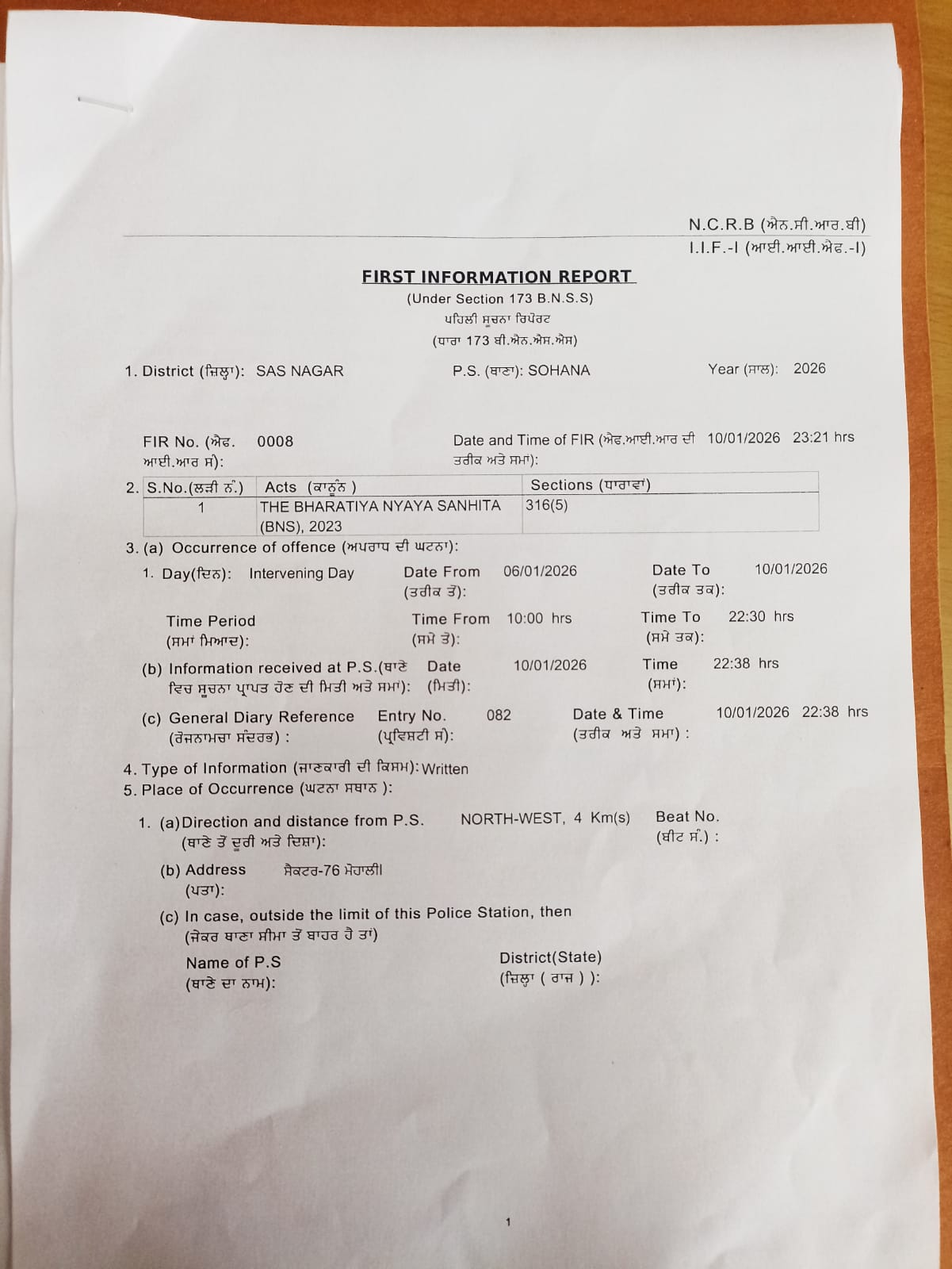 FIR: ਇਸ ਸ਼ਿਕਾਇਤ ਦੇ ਆਧਾਰ 'ਤੇ ਮੋਹਾਲੀ ਵਿੱਚ ਮਾਮਲਾ ਦਰਜ ਕੀਤਾ ਗਿਆ ਹੈ ਅਤੇ ਉਸੇ ਸਬੰਧ ਵਿੱਚ ਇਹ ਗ੍ਰਿਫਤਾਰੀ ਕੀਤੀ ਗਈ ਹੈ।