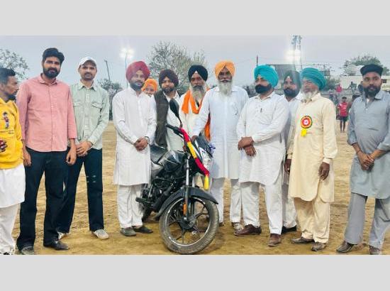 ਪੰਜਗਰਾਈਂ ਕਲਾਂ,17 ਮਾਰਚ (ਸੁਖਜਿੰਦਰ ਸਿੰਘ ਪੰਜਗਰਾਈਂ): 'ਮਜੀਠੀਏ ਦਾ ਬੜਾ ਚਿੱਟਾ ਕੁੜਤਾ ਪੰਜਾਮਾ ਏ' ਕਵਿਤਾ ਨਾਲ ਮਸ਼ਹੂਰ ਹੋਏ ਤੇ 'ਦੁਨੀਆਂ ਯਾਦ ਰੱਖੂਗੀ' ਕਿਤਾਬ ਲਿਖ ਕੇ ਸਾਹਿਤ ਕਲਾ ਵਿੱਚ ਵੱਖਰੀ ਪਹਿਚਾਣ ਬਣਾਉਣ ਵਾਲੇ ਉੱਘੇ ਸਾਹਿਤਕਾਰ ਵਰਿੰਦਰ ਔਲਖ ਨੂੰ ਬੀਤੇ ਦਿਨੀਂ ਬਘੇਲਾ ਪਿੰਡ ਵਿਖੇ ਸ਼ਹੀਦ ਬਾਬਾ ਜ਼ੋਰਾ ਸਿੰਘ ਜੀ ਦੀ ਯਾਦ ਵਿੱਚ ਕਰਵਾਏ ਗਏ ਕਬੱਡੀ ਟੂਰਨਾਮੈਂਟ ਤੇ ਪਲਟੀਨਾ ਮੋਟਰਸਾਈਕਲ ਨਾਲ ਅਮਰਜੀਤ ਸਿੰਘ ਭਲੂਰ (ਇਟਲੀ) ਤੇ ਸੰਦੀਪ ਜੰਡ (ਇਟਲੀ) ਵੱਲੋਂ ਵਿਸ਼ੇਸ਼ ਤੌਰ ਤੇ ਸਨਮਾਨਿਤ ਕੀਤਾ ਗਿਆ।