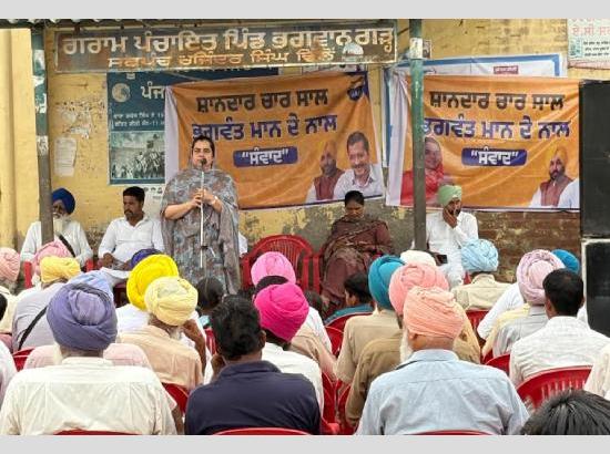 ਪਿੰਡ ਭਗਵਾਨਗੜ੍ਹ ਵਿਖੇ ਸੰਵਾਦ ਬੈਠਕ ਨੂੰ ਸੰਬੋਧਨ ਕਰਦਿਆਂ ਉਨ੍ਹਾਂ ਕਿਹਾ ਕਿ ਮੁੱਖ ਮੰਤਰੀ ਭਗਵੰਤ ਸਿੰਘ ਮਾਨ ਦੀ ਅਗਵਾਈ ਹੇਠ ਪੰਜਾਬ ਸਰਕਾਰ ਨੇ ਚਾਰ ਸਾਲਾਂ ਵਿੱਚ ਲੋਕਾਂ ਨਾਲ ਕੀਤੇ ਵਾਅਦੇ ਪੂਰੇ ਕੀਤੇ ਹਨ। ਪੰਜਾਬ ਦੇ ਲੋਕਾਂ ਲਈ 10 ਲੱਖ ਰੁਪਏ ਤੱਕ ਦੀ ਸਿਹਤ ਗਾਰੰਟੀ, ਮਹਿਲਾਵਾਂ ਨੂੰ ਸਤਿਕਾਰ ਵਜੋਂ 1000 ਅਤੇ 1500 ਰੁਪਏ ਦੇਣ ਦੇ ਵਾਅਦੇ, ਸਕੂਲ ਆਫ਼ ਐਮੀਨੈਂਸ ਰਾਹੀਂ ਮਿਆਰੀ ਸਿੱਖਿਆ ਅਤੇ ਆਮ ਆਦਮੀ ਕਲੀਨਿਕਾਂ ਰਾਹੀਂ ਮੁਫ਼ਤ ਇਲਾਜ ਵਰਗੀਆਂ ਯੋਜਨਾਵਾਂ ਲੋਕ ਹਿੱਤ ਲਾਗੂ ਕੀਤੀਆਂ ਗਈਆਂ ਹਨ।