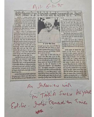 ( ਇਸ ਲਿਖਤ ਨਾਲ ਸ਼ੇਅਰ ਕੀਤੀ ਤਾਰਾ ਸਿੰਘ ਹੇਅਰ ਨਾਲ ਮੇਰੀ ਇਹ ਫੋਟੋ 1997 ਦੀ ਹੈ )